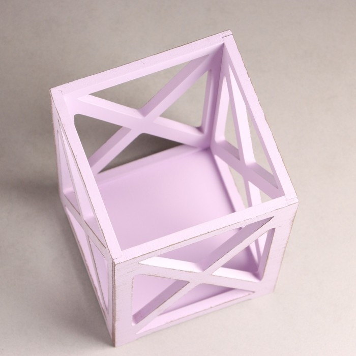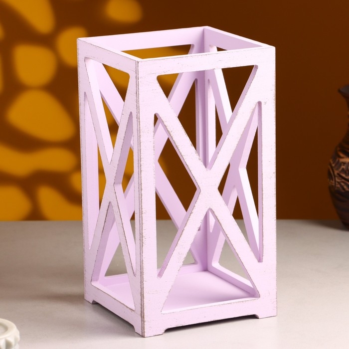 Кашпо деревянное 14×14×26 см "Фонарь Хай-тек Прованс", Сиреневый