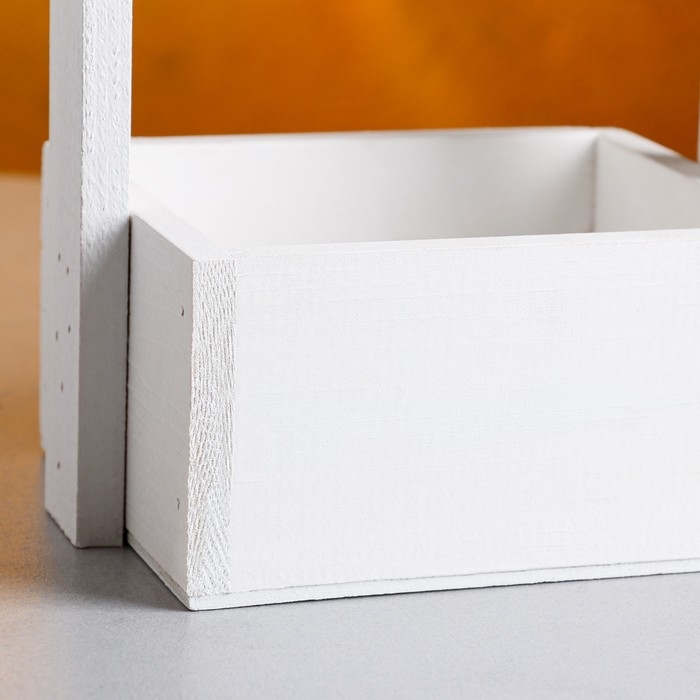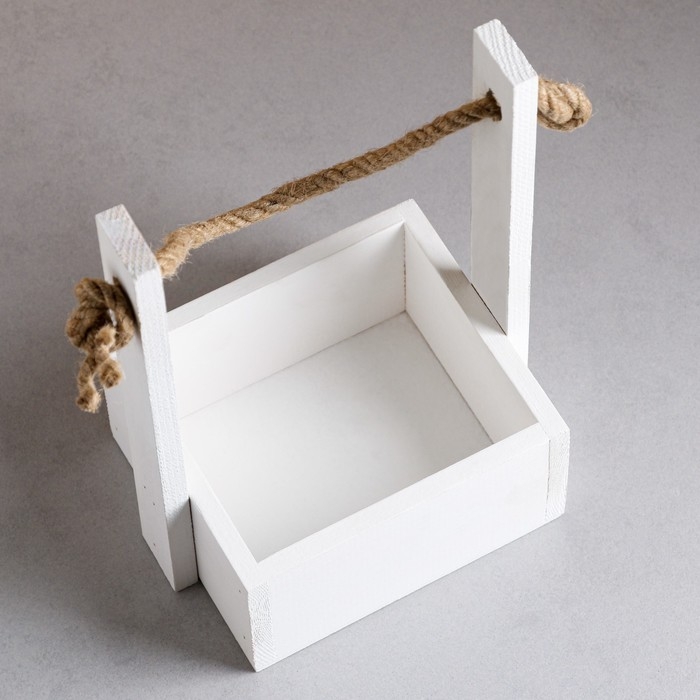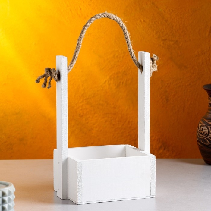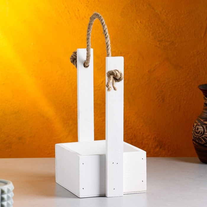 Кашпо деревянное 15×12×25 см "Ажур", прямоугольное, ручка верёвка, белый Дарим Красиво