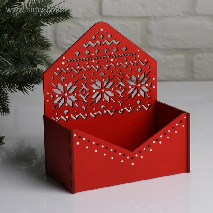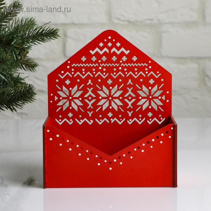 Кашпо деревянное, 16.5×9.3×19.5 см "Новогоднее. Конверт Норвежский", красный