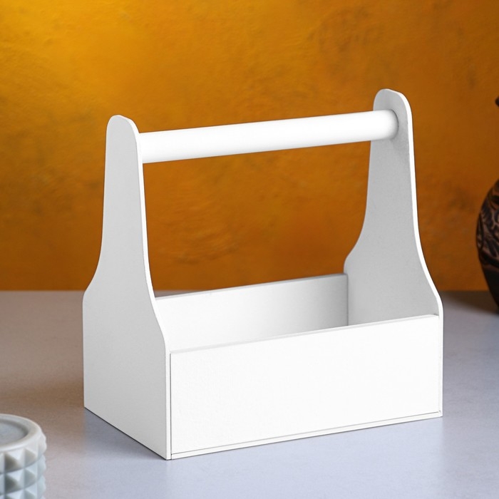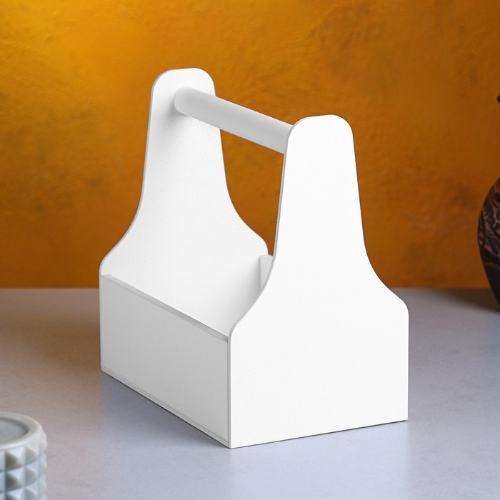 Кашпо деревянное 20×12.5×20 см Стелла Моно, с ручкой, белый Дарим Красиво