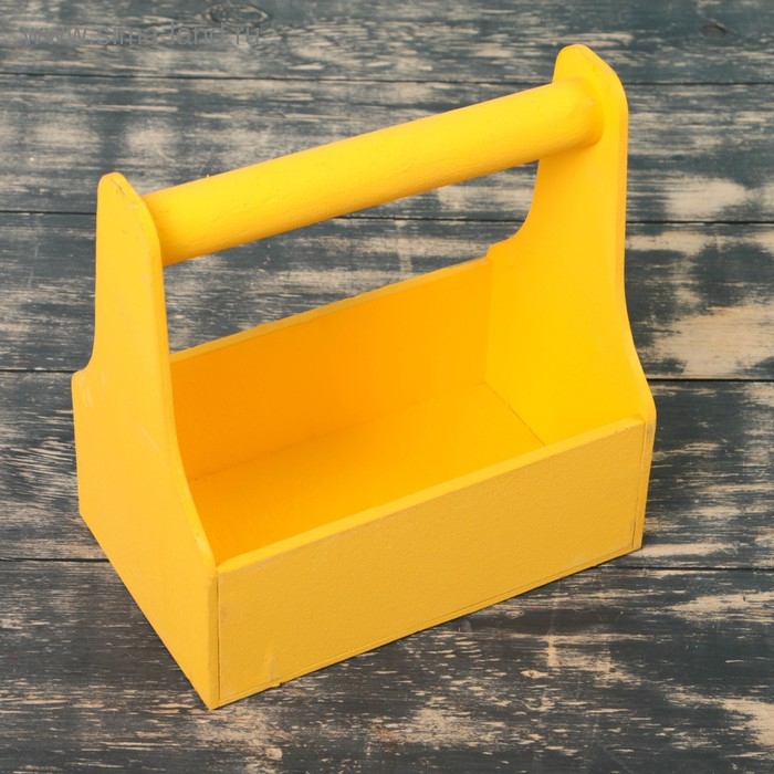 Кашпо деревянное 20×12.5×20 см Стелла Моно, с ручкой, жёлтый Дарим Красиво