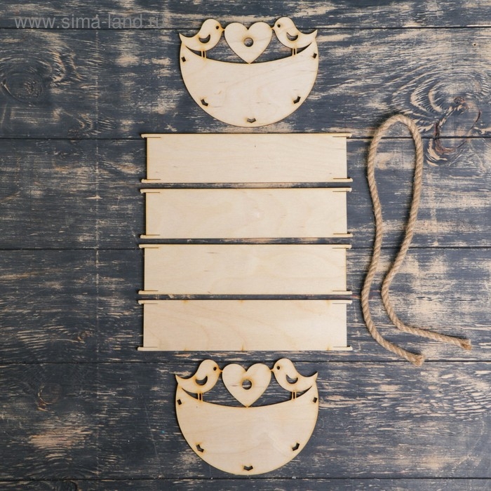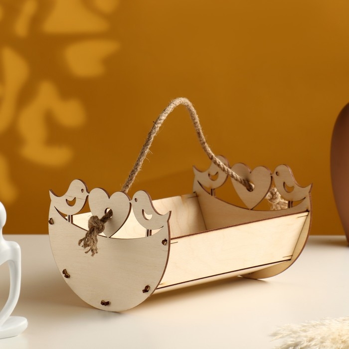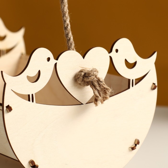 Кашпо деревянное 22×15×12 см уникальное "Птичкина кормушка Лайт", ручка верёвка, натуральный