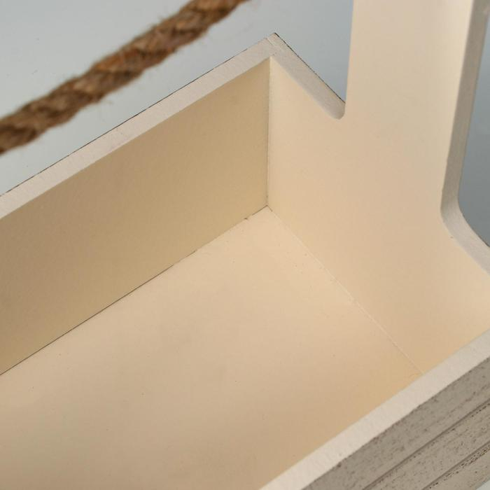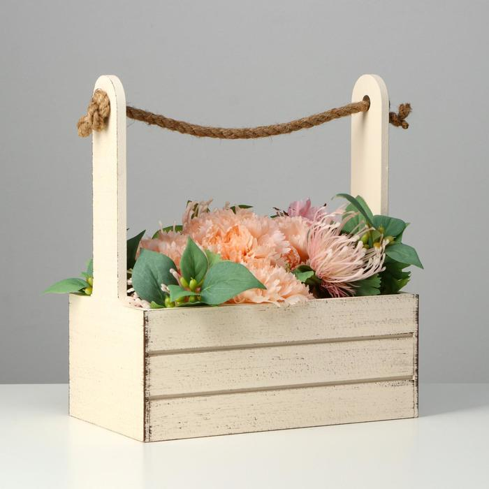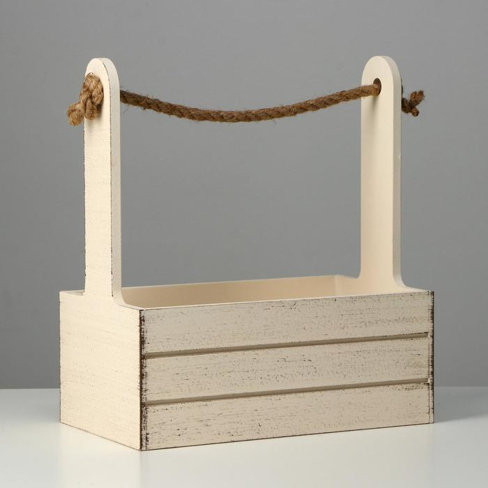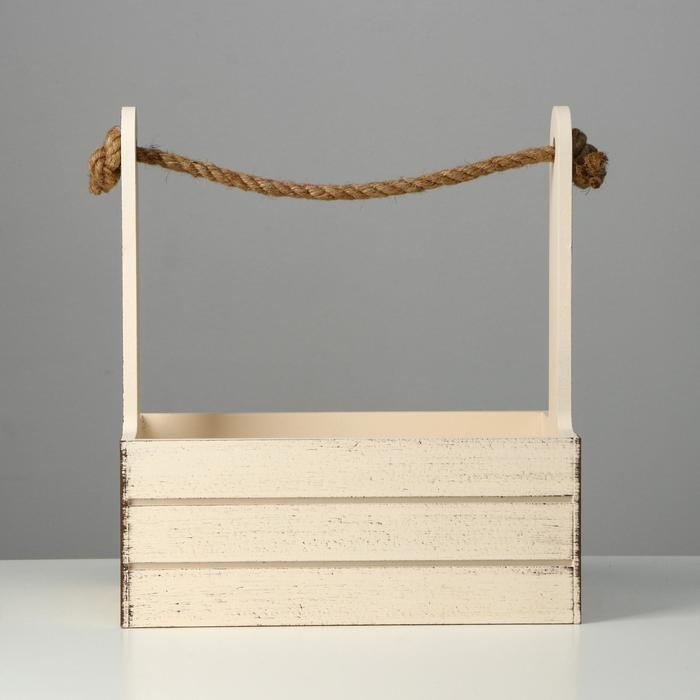 Кашпо деревянное 25.5×15×28 см "Прованс", ручка канат, бежевый