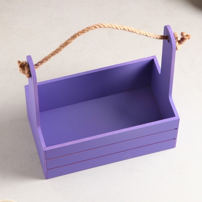 Кашпо деревянное 25.5×15×30 см "Аром", ручка канат, Фиолетовый