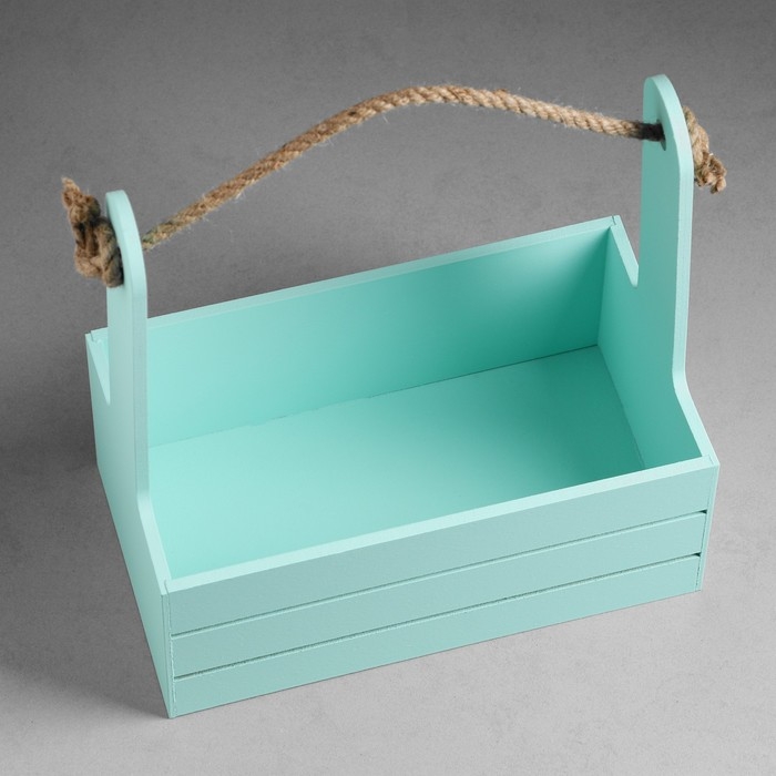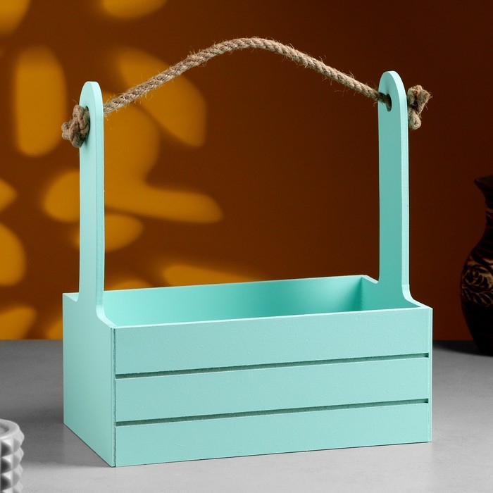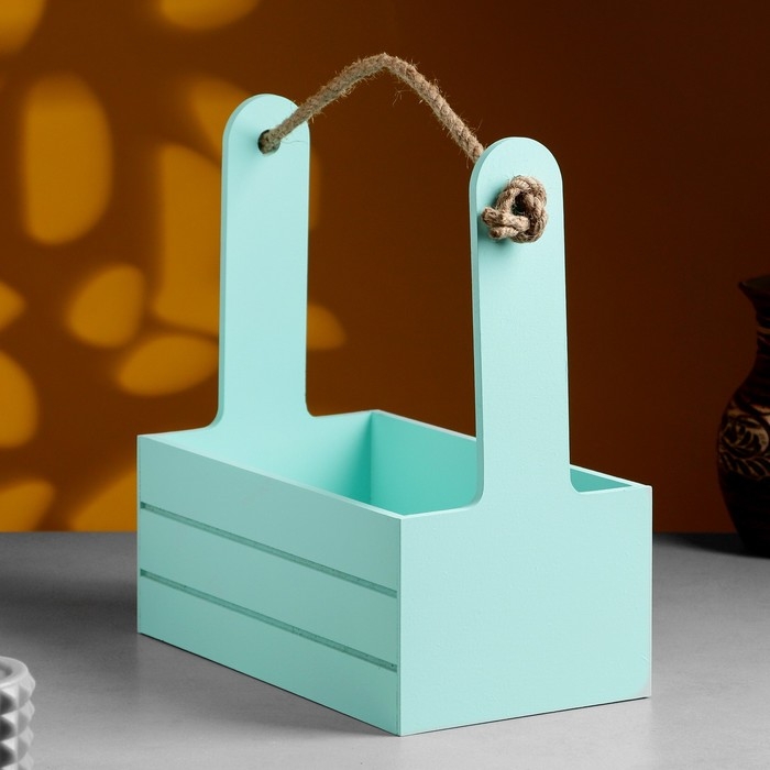 Кашпо деревянное 25.5×15×30 см "Аром", ручка канат, Мятный