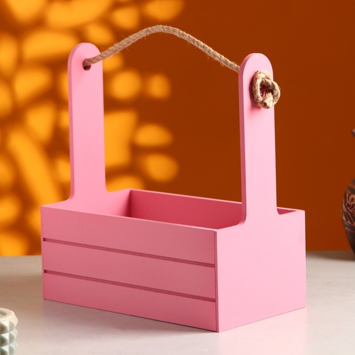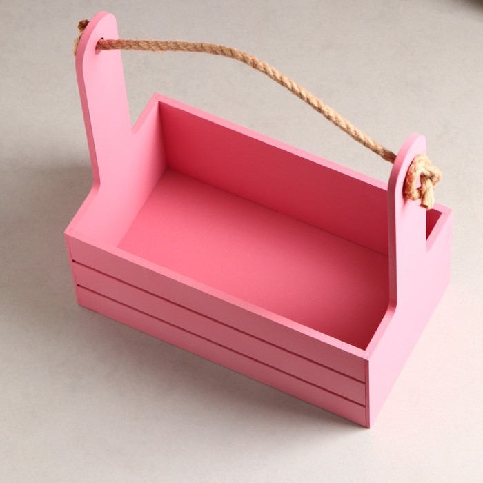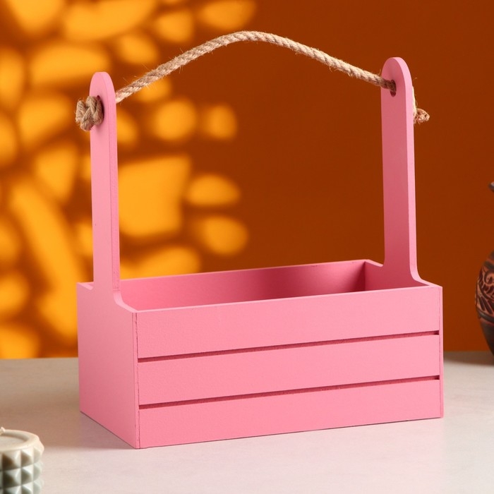 Кашпо деревянное 25.5×15×30 см "Аром", ручка канат, Розовый Коралл