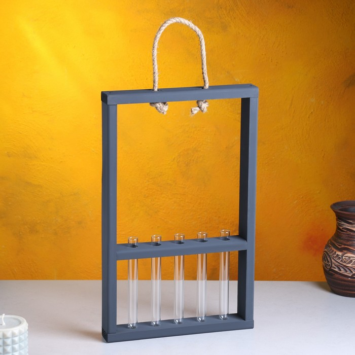 Кашпо деревянное 26×5×40 см с 5 колбами 15 см "Рамка Экстра Слим", чёрный Дарим Красиво
