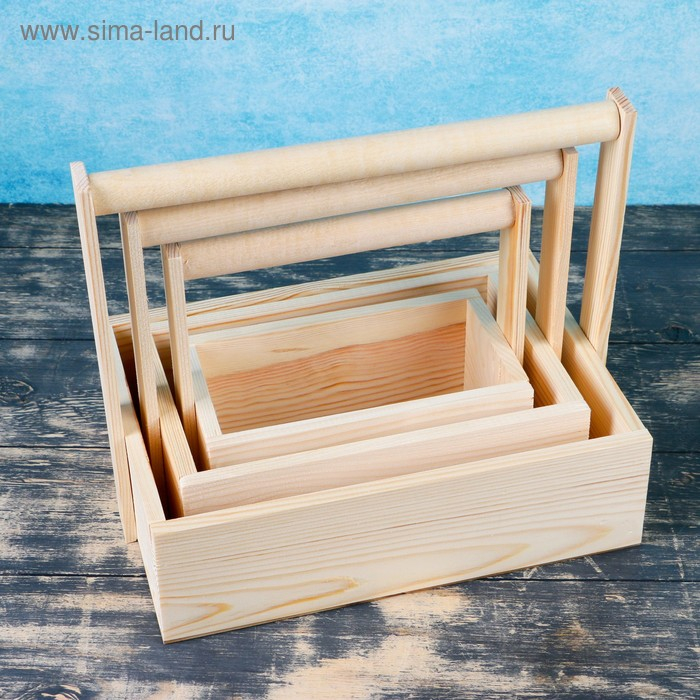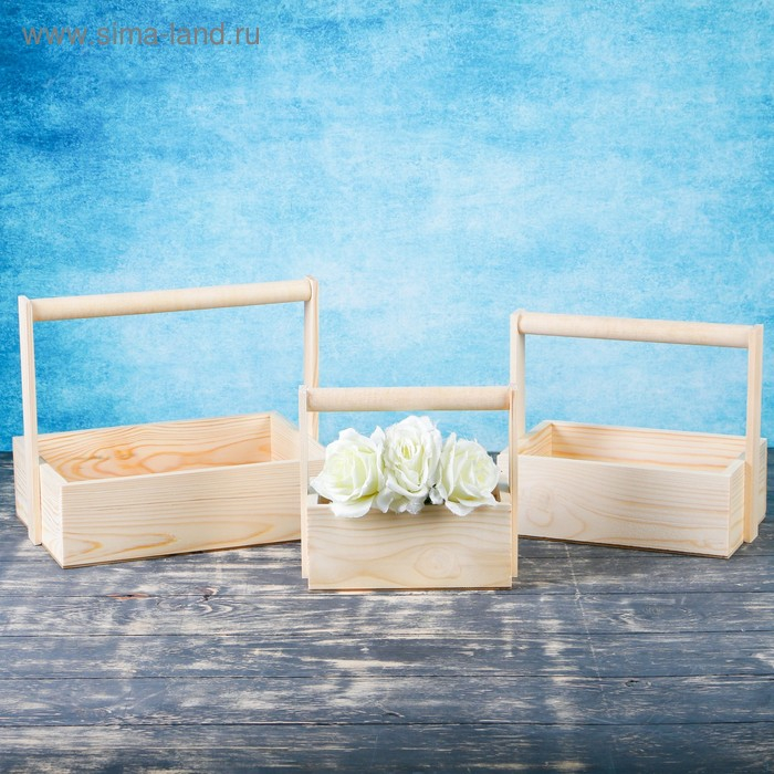 Кашпо деревянное 30×26×21 см Элегант "Классик", 3 в 1, с ручкой, натуральный Дарим Красиво