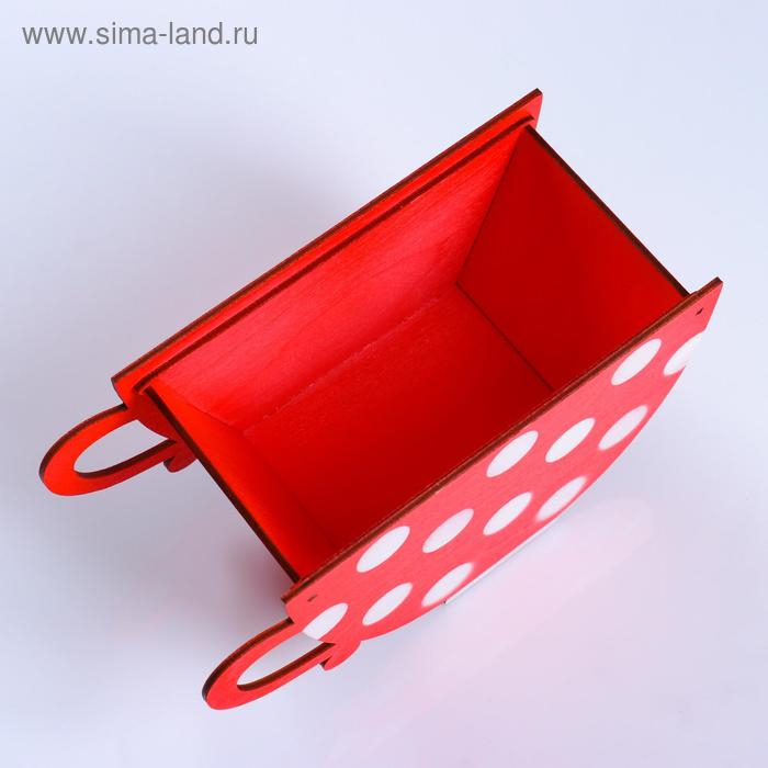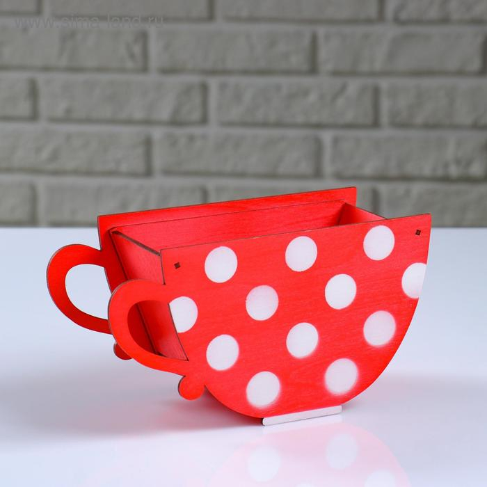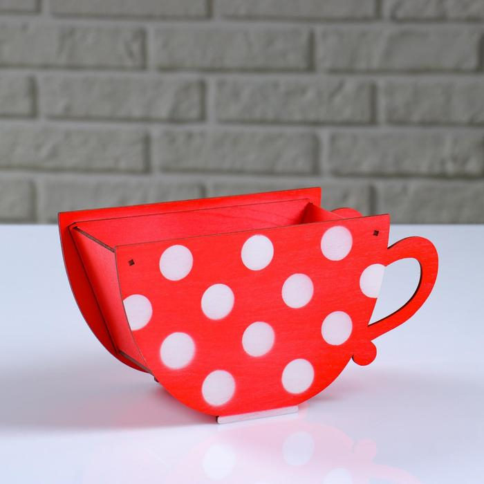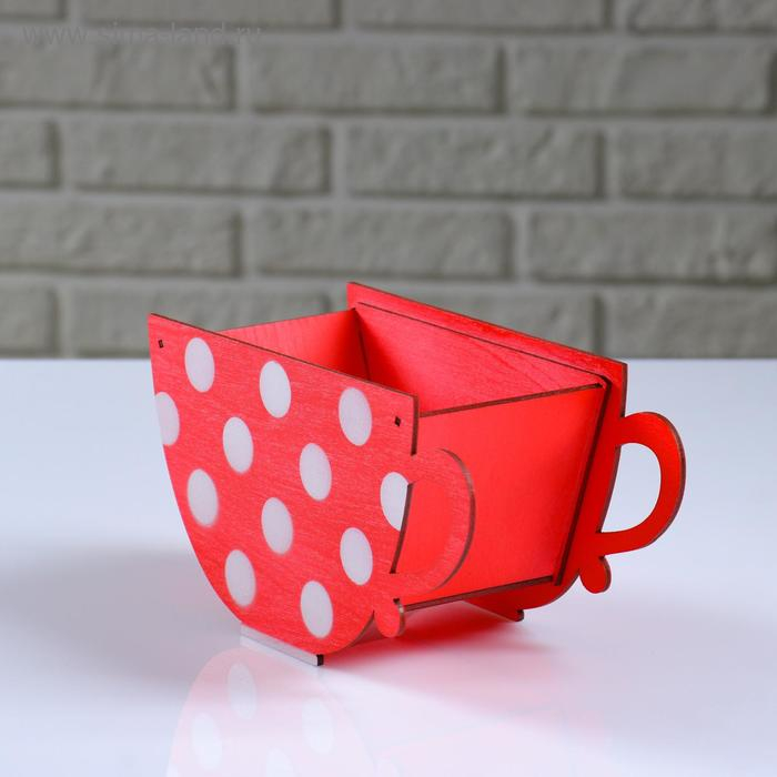 Кашпо деревянное "Чашка в горошек", красный, 20×9×11 см