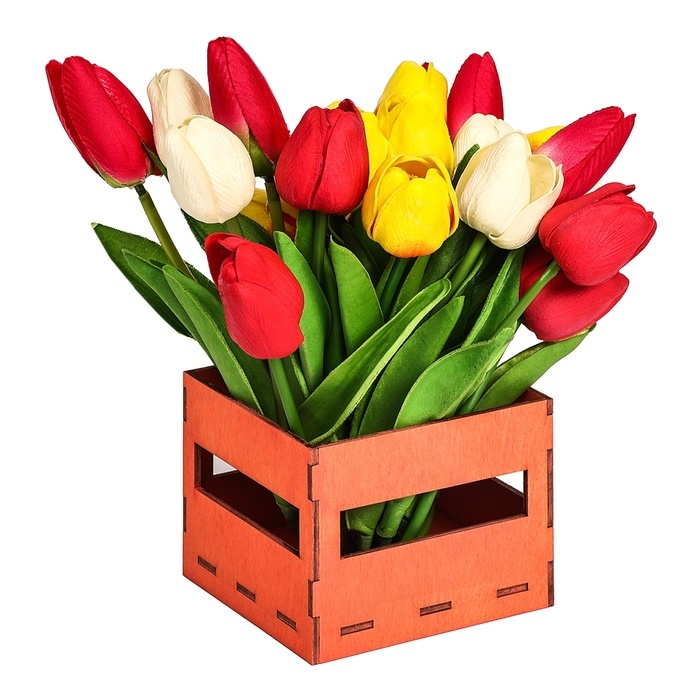 Кашпо деревянное 20×12.5×20 см Стелла Моно, с ручкой, натуральный Дарим Красиво