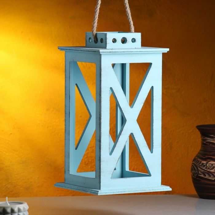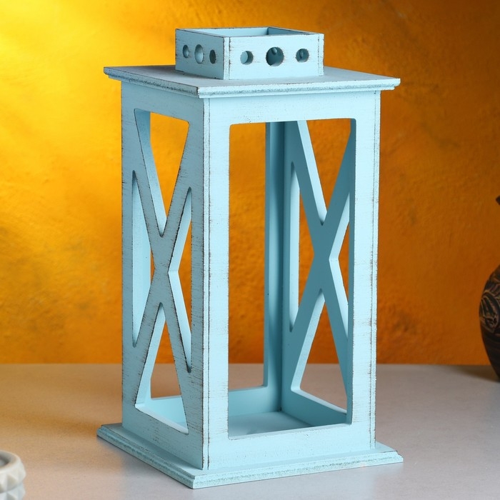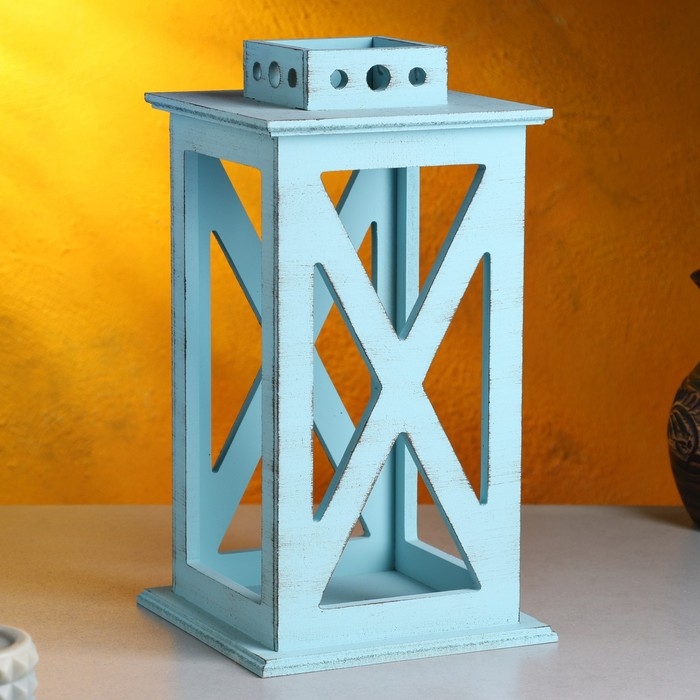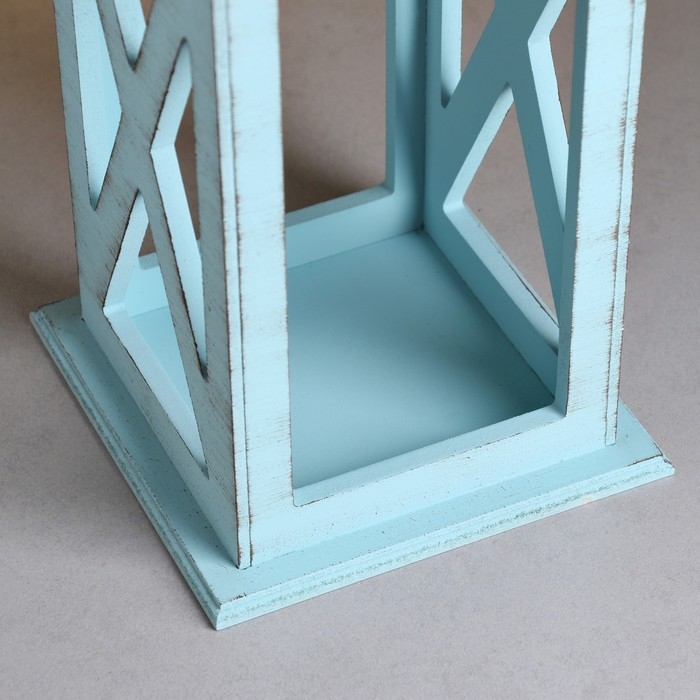Кашпо деревянное "Фонарь. Прованс" 17х17х31 см, серо-голубой