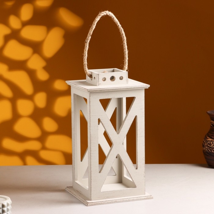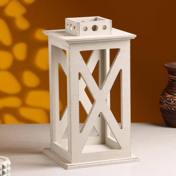 Кашпо деревянное "Фонарь. Прованс" 17х17х31 см Светло-серый