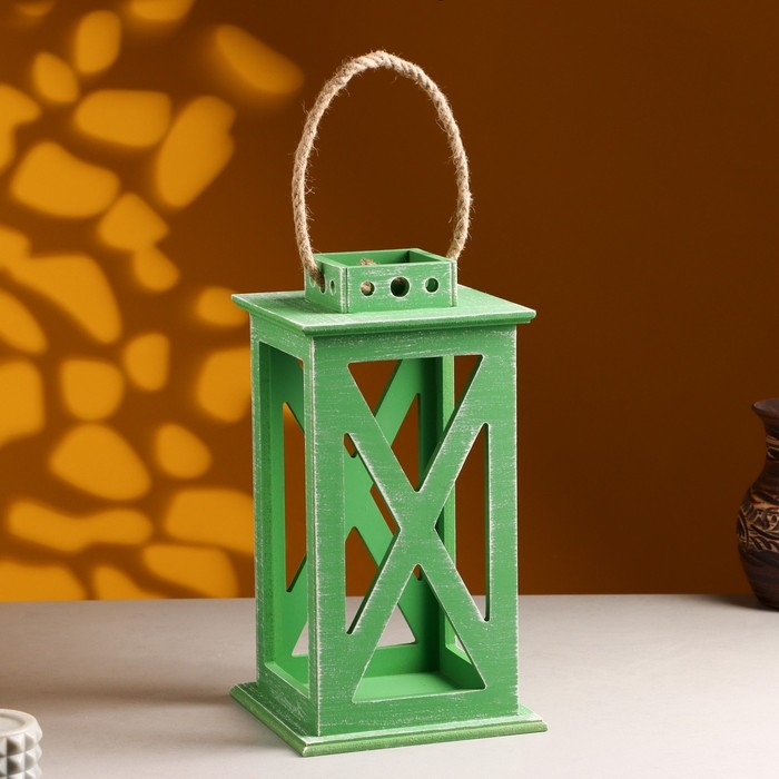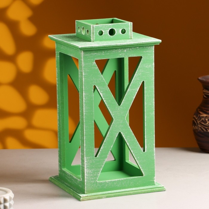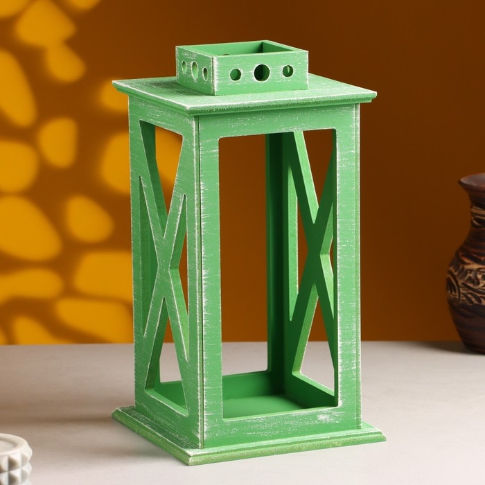 Кашпо деревянное "Фонарь. Прованс" 17х17х31 см Зелёный