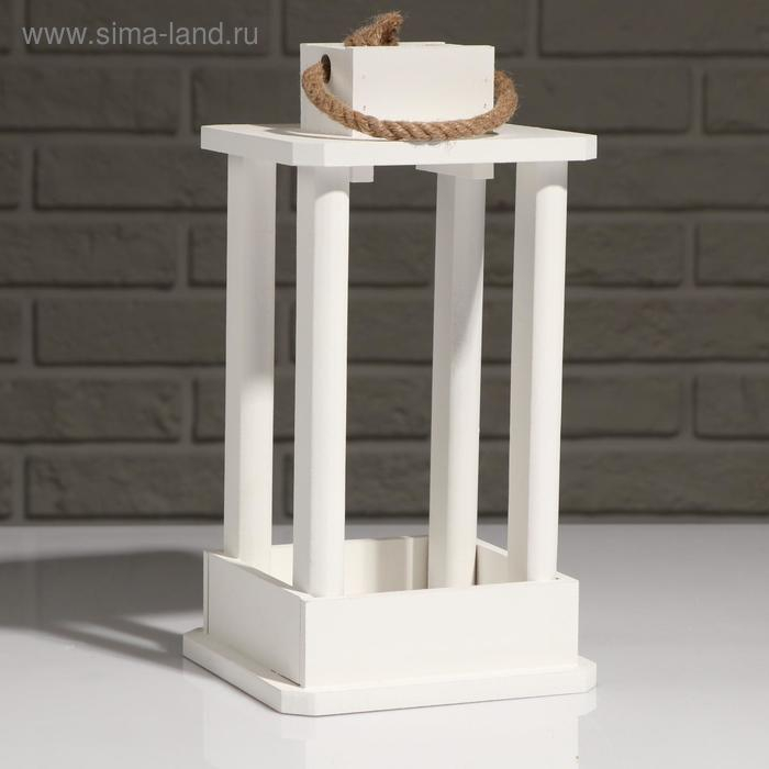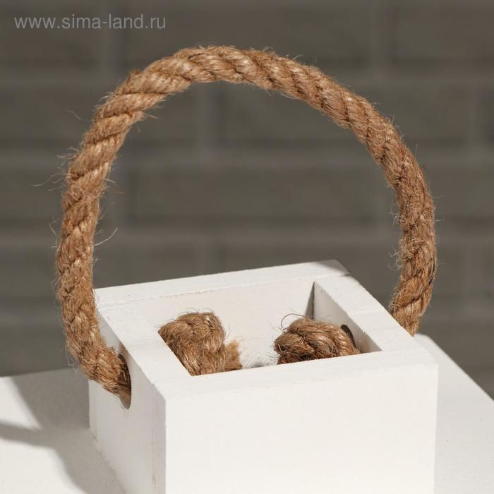 Кашпо деревянное "Фонарь", ручка верёвка, белый, 16×16×30 см