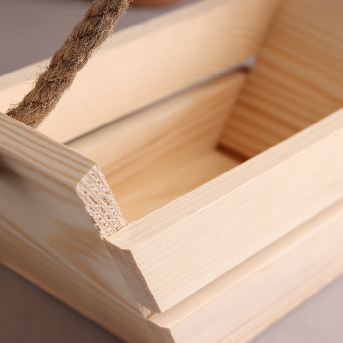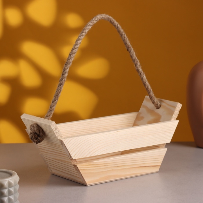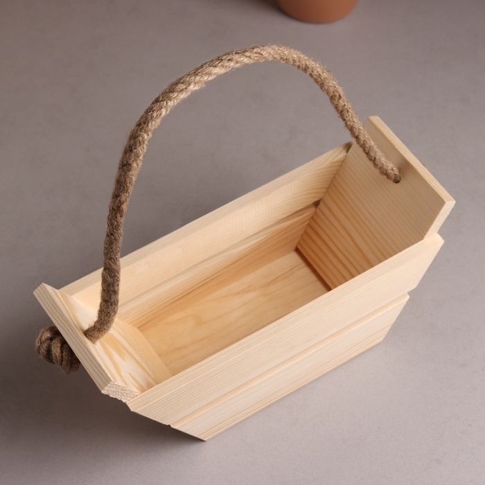Кашпо деревянное, "Лодочка" 270*110*110. Ручка- веревка 8мм.
