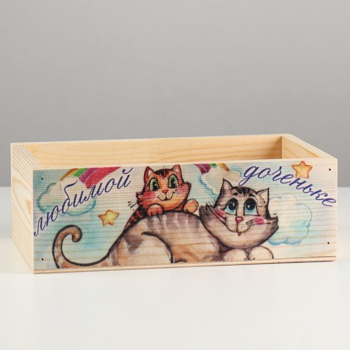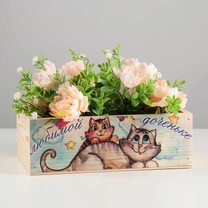Кашпо деревянное "Любимой доченьке" 25×14,7×8,5 см