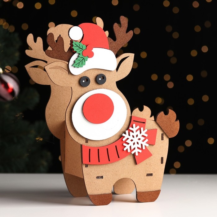 Кашпо деревянное новогоднее "Оленёнок" 28х22,5х8,5 см орех