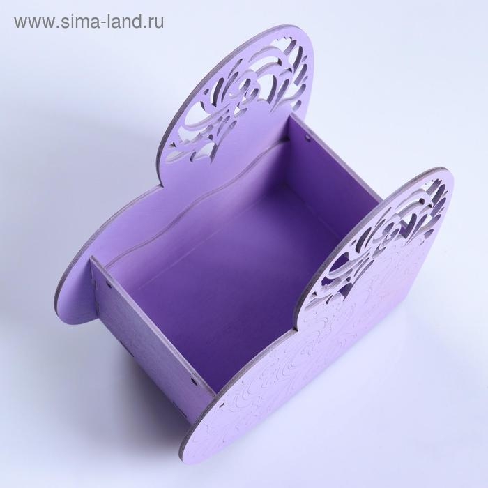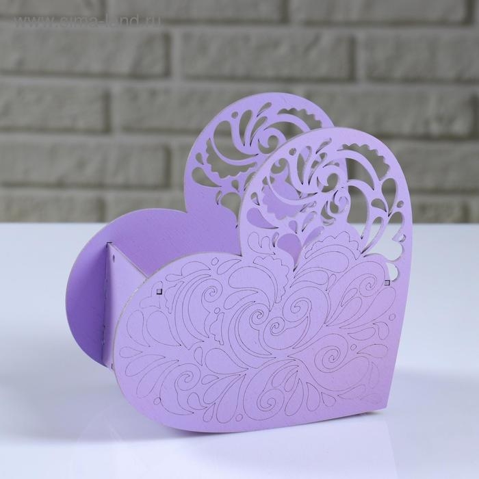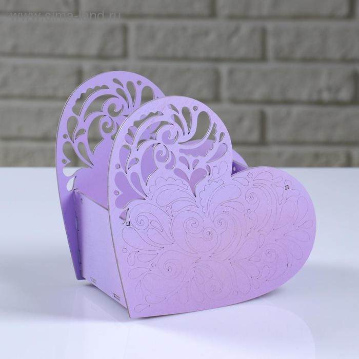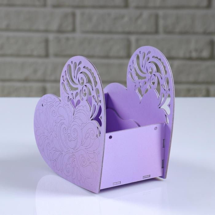 Кашпо деревянное "Сердце ажурное", сиреневый, 18×8.6×14 см