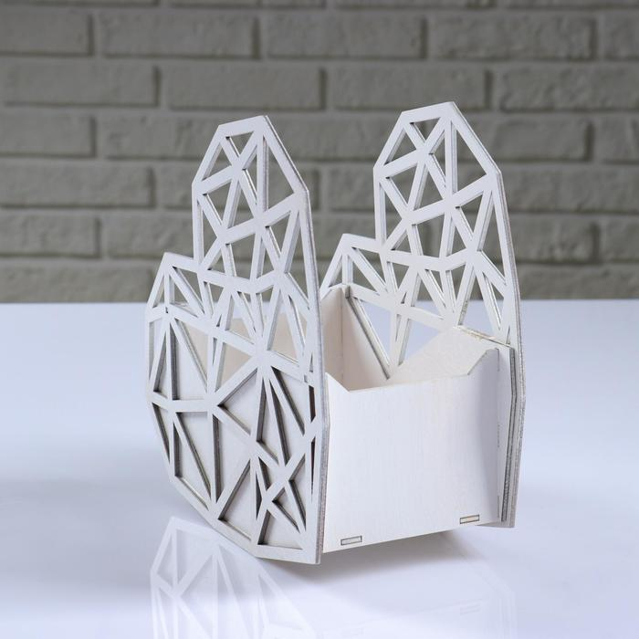 Кашпо деревянное "Сердце Хайтек", белый, 20×10×20 см