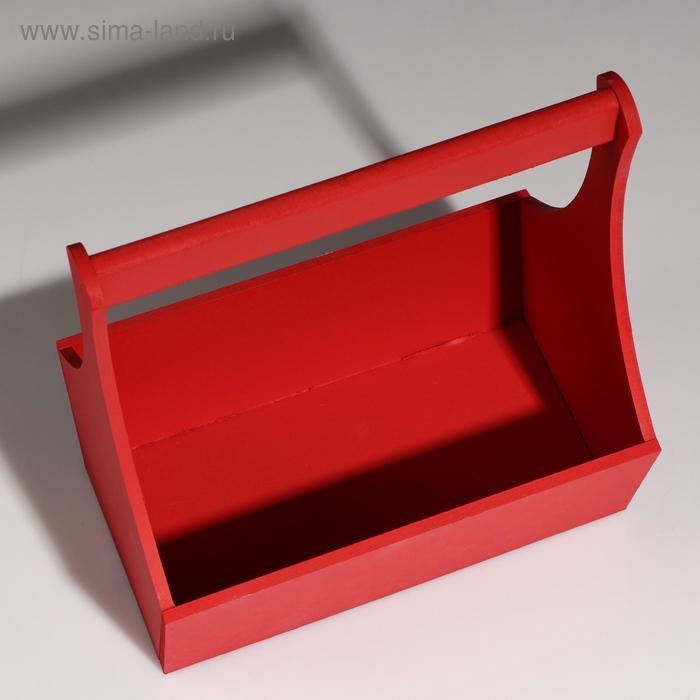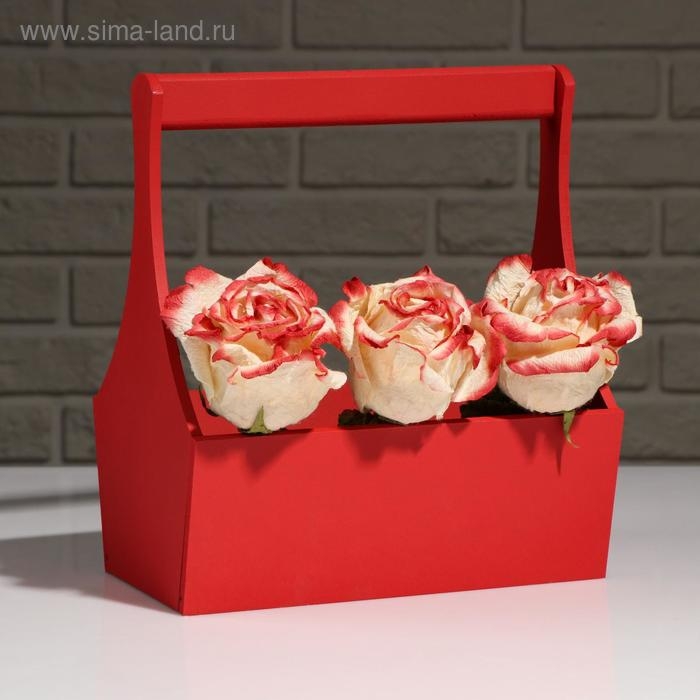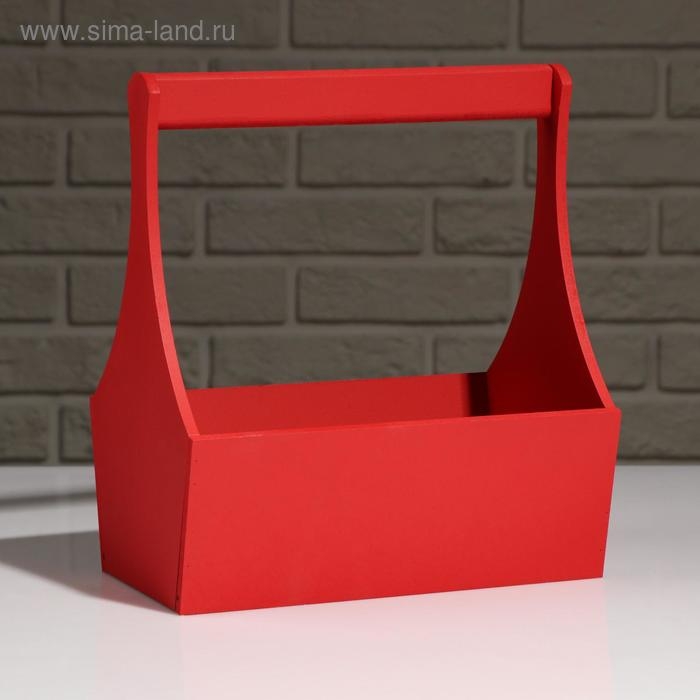 Кашпо деревянное "Виллиан Лонг", с ручкой, красный, 25×12,5×10(28) см