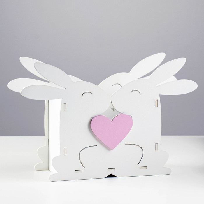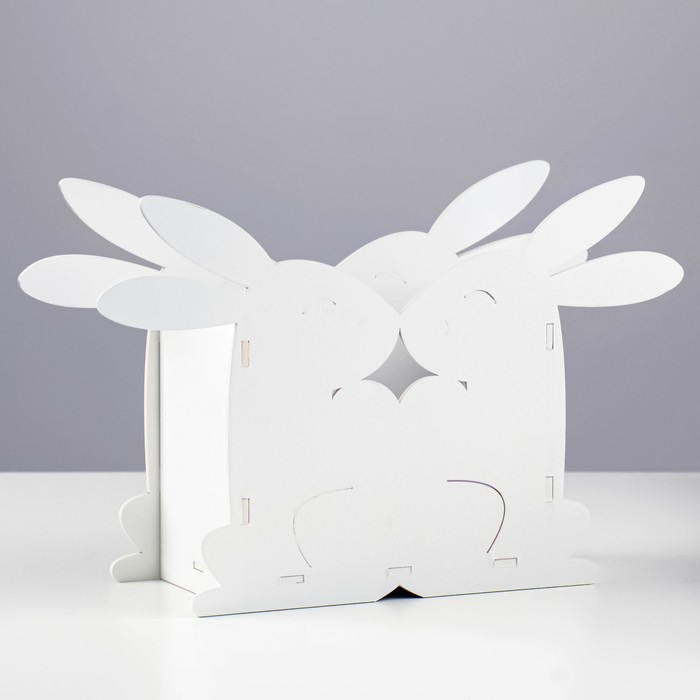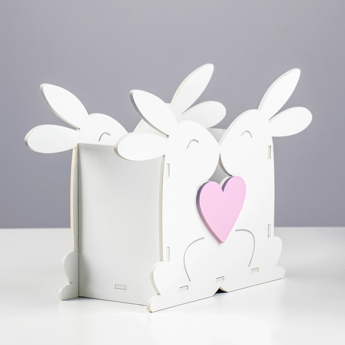 Кашпо деревянное "Зайчики" 16,5х25,4х8,6 см белый/розовый