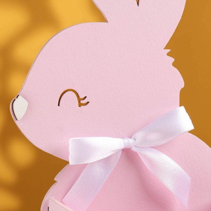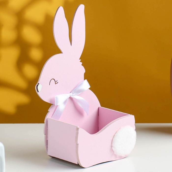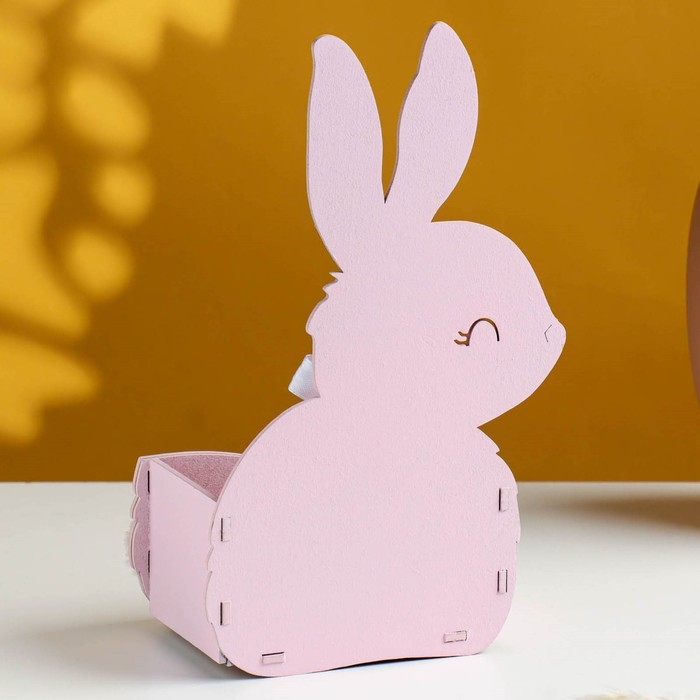 Кашпо деревянное "Зайка" 13х7,5х22 см розовый