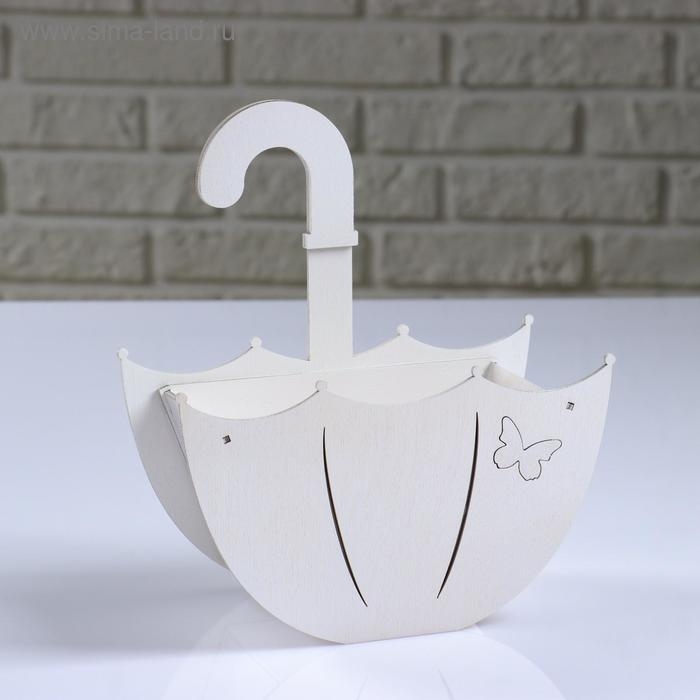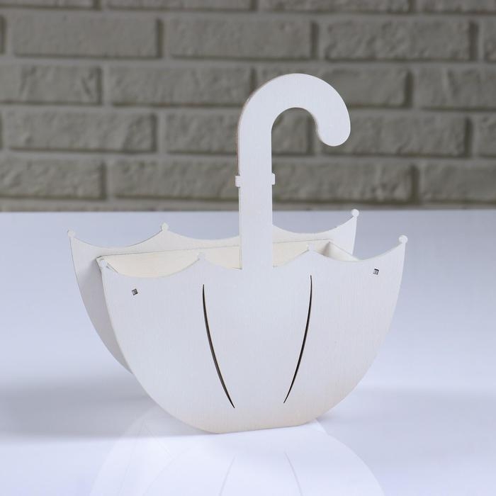 Кашпо деревянное "Зонтик с подвесом", белый, 19×9×21.5 см