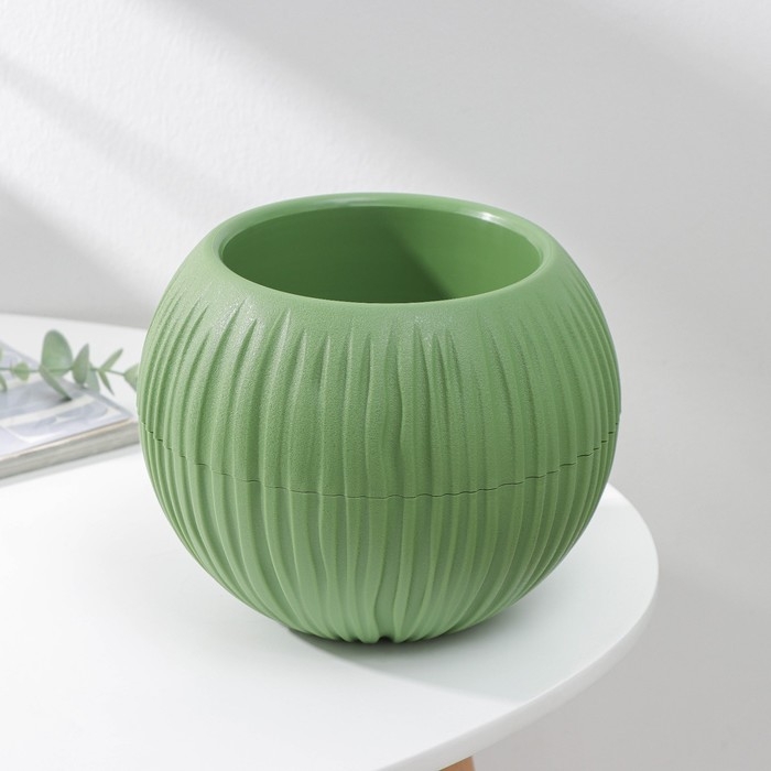 Кашпо для цветов со вставкой «Сфера», 1,7 л, d=13,5 см, h=16 см, цвет оливковый