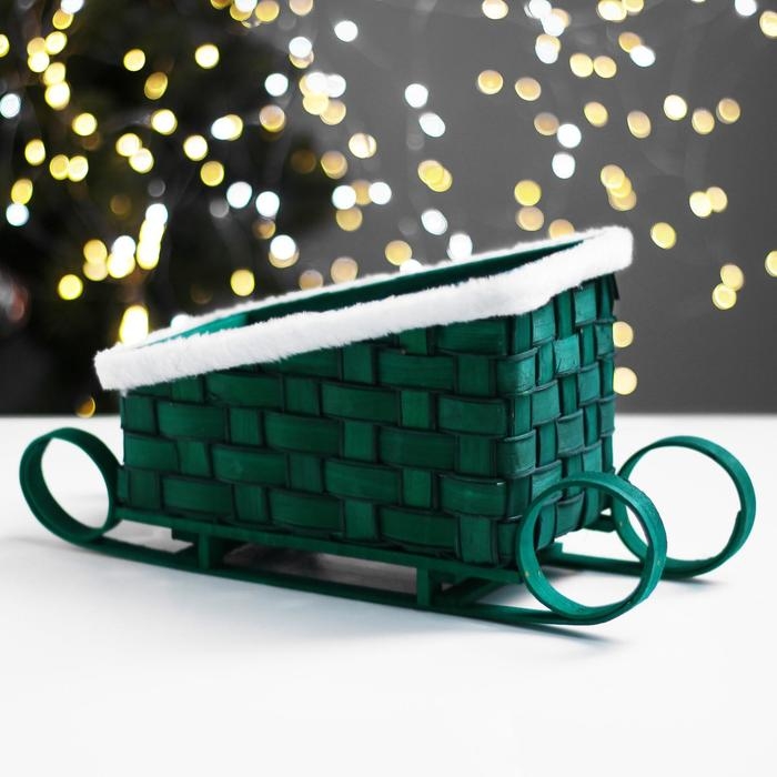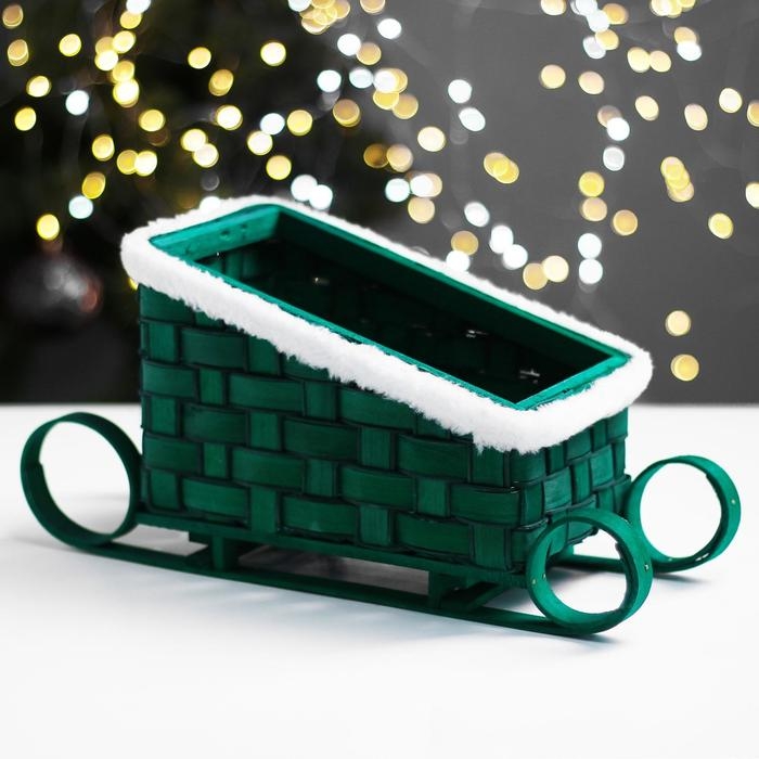Кашпо «Сани», зелёное, 23×13,5×10,5/16,5 см, шпон