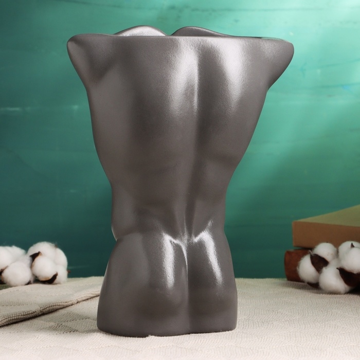 Кашпо - ваза "Торс мужчины" серое с бронзой, 28 см