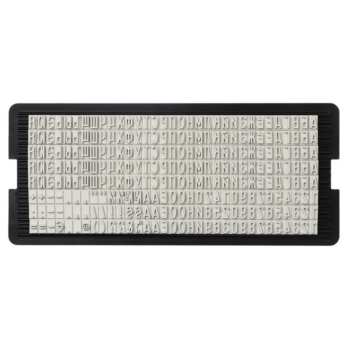 Касса из высококачественной резины с оптимальным набором букв, цифр и знаков.