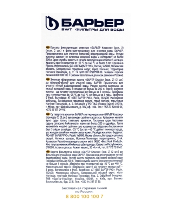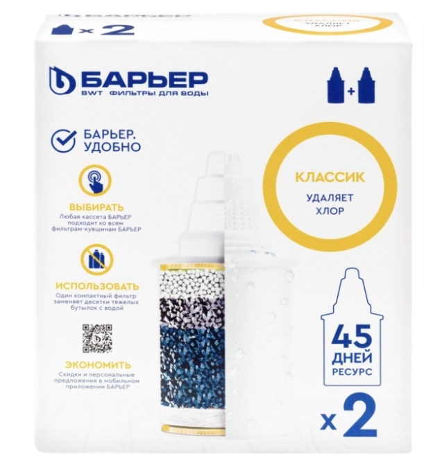 Кассета сменная БАРЬЕР Классик, удаление хлора, 2шт