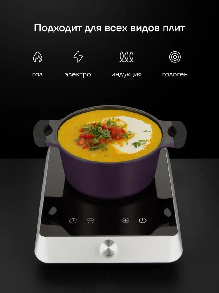 Кастрюля 4,4 литра POLARIS — это незаменимый помощник на любой кухне. Изготовленная из прочного литого алюминия, она отличается равномерным нагревом и долговечностью. Антипригарное тефлоновое покрытие обеспечивает комфортное приготовление пищи без пригорания, а бакелитовые ручки остаются прохладными даже во время длительного использования. Эта кастрюля с крышкой подходит для всех типов плит, включая индукционные, что делает ее универсальным решением для любой хозяйки. Ее объем 4,4 литра идеально подходит для приготовления блюд для всей семьи.