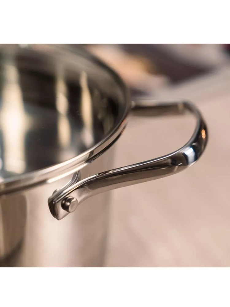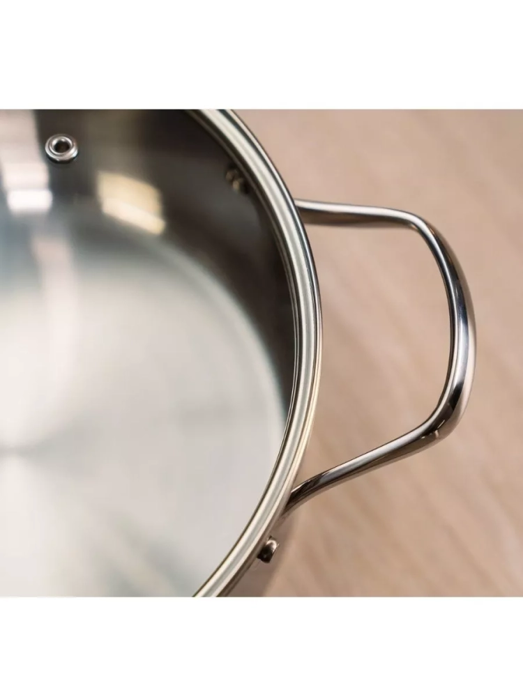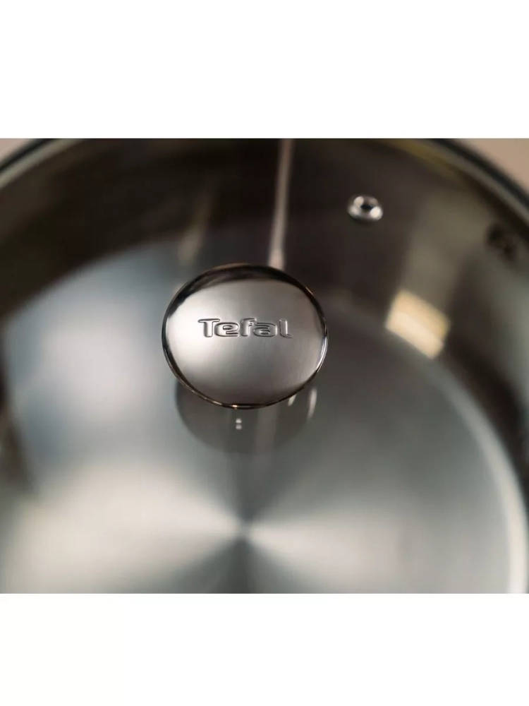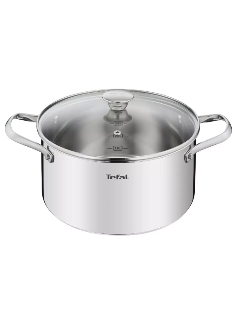 Посуда выполнена из высококачественной нержавеющей стали, на которую предоставляется 5-летняя гарантия, что гарантирует долгий срок службы и прочность изделия. Также металлическая кастрюля оснащена прочными заклепочными ручками, которые обеспечивают надежное и безопасное использование каждый день. Мерная шкала на внутренней поверхности стенок кухонного инвентаря позволяет точно отмерять количество жидкости, что значительно упростит процесс готовки. Благодаря стеклянной крышке с паровыпуском, вы сможете наблюдать за процессом приготовления, не нарушая его. Большая кастрюля Тефаль объемом 5,4 л идеально подойдет для создания самых разнообразных блюд – от спагетти болоньезе до домашнего попкорна. Толстое индукционное дно равномерно распределяет тепло, а совместимость с газовыми и электрическими плитами делает её универсальным инструментом на вашей кухне.