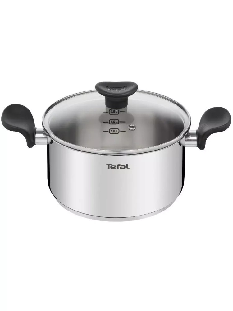 Посуда для кухни выполнена из высококачественной нержавеющей стали с толстым индукционным дном, что гарантирует равномерное распределение тепла и долговечность использования. Эргономичные ручки не нагреваются, обеспечивая безопасность и комфорт во время приготовления еды. На внутренней поверхности металлической кастрюли Тефаль расположена мерная шкала для удобного измерения ингредиентов и объема жидкости. Стеклянная крышка с отверстием для выпуска пара помогает контролировать процесс готовки, сохраняя сочность и аромат блюд. Большая кастрюля объемом 3 л подходит для всех типов плит, включая индукционные, и может быть использована в духовке при температуре до 175°С. Кроме того, ее можно мыть в посудомоечной машине, что позволит упростить процесс ухода за кухонным инвентарем.