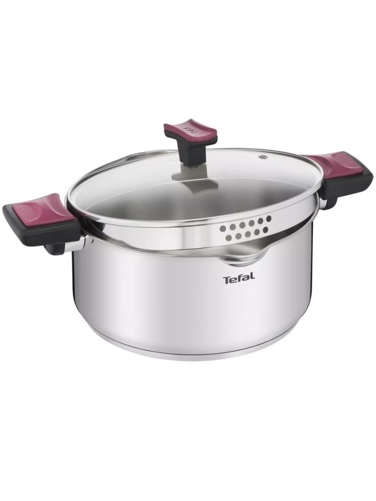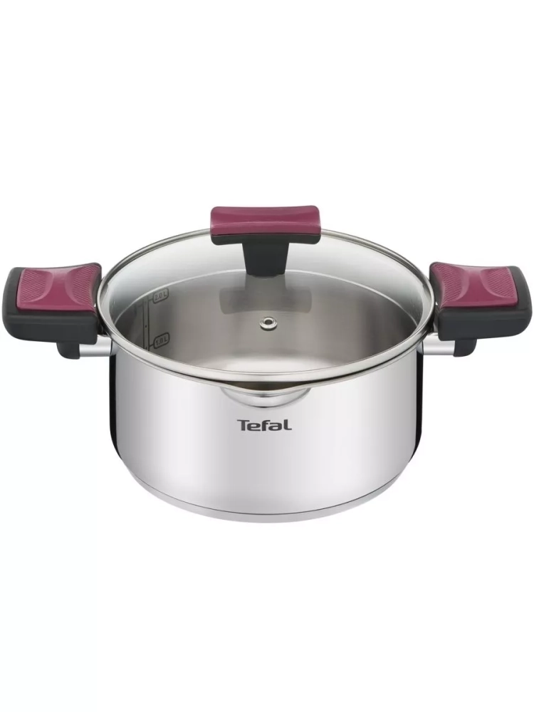 Готовьте так, как вы любите, и будьте спокойны за свою посуду с 10-летней гарантией производителя на качественную нержавеющую сталь и усовершенствованные технологии производства, которые гарантируют максимальную прочность, устойчивость к повреждениям, долговечность и удовольствие от использования. Толстое инкапсулированное дно кастрюли объемом 2,9 л отлично распределяет тепло и обеспечивает равномерное приготовление пищи. Кроме того, посуда для дома оснащена инновационной системой блокировки для более легкого и комфортного слива лишней жидкости без использования дуршлага. Просто заблокируйте стеклянную крышку так, чтобы отверстия совпадали с носиками на кастрюле, и наклоните ее, чтобы слить воду. Ручки кухонного инвентаря и крышки выполнены из бакелита и имеют нескользящее покрытие, которое выполняет функцию держателя для половника, позволяя сохранять рабочую поверхность чистой. Мерная шкала на внутренней стенке кастрюли помогает точно отмерять количество жидких ингредиентов и объем готовых блюд. Кастрюля Тефаль совместима со всеми типами плит, включая индукционные, и подходит для мытья в посудомоечной машине, что делает её использование максимально удобным.