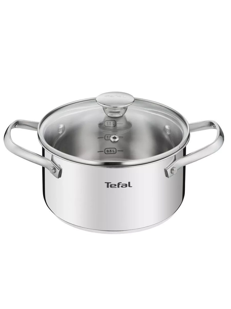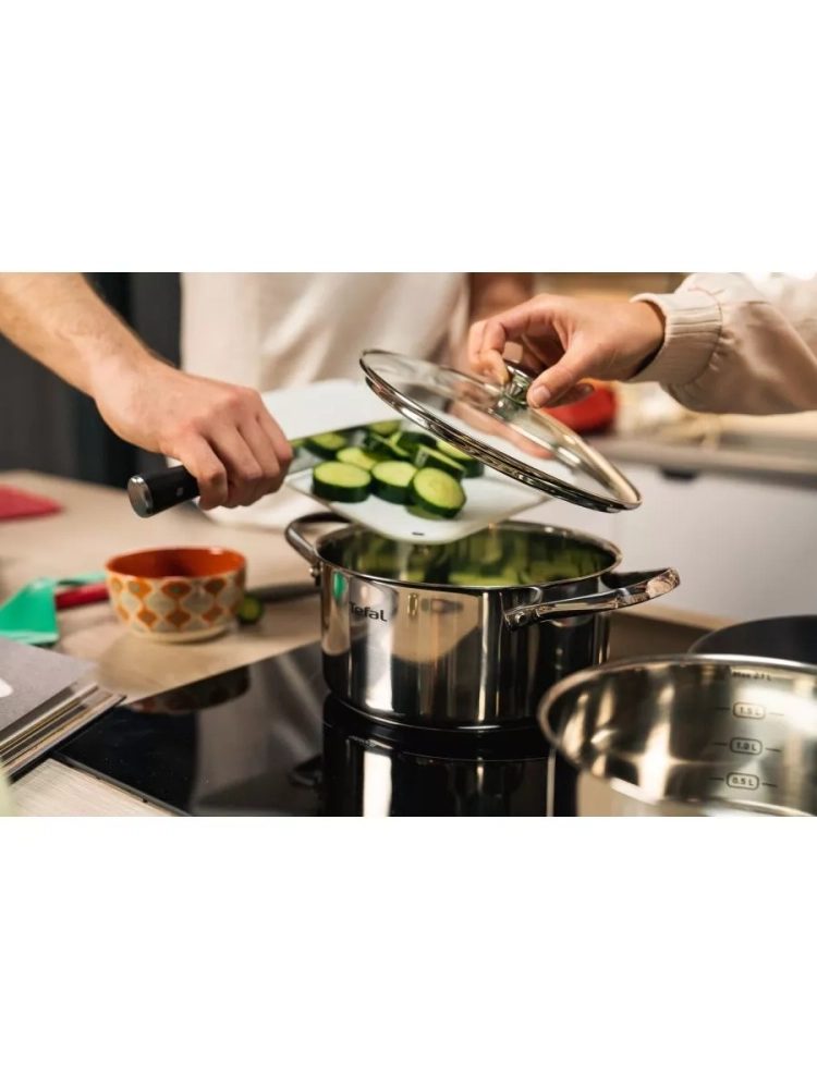 Посуда выполнена из высококачественной нержавеющей стали, на которую предоставляется 5-летняя гарантия, что гарантирует долгий срок службы и прочность изделия. Также металлическая кастрюля оснащена прочными заклепочными ручками, которые обеспечивают надежное и безопасное использование каждый день. Мерная шкала на внутренней поверхности стенок кухонного инвентаря позволяет точно отмерять количество жидкости, что значительно упростит процесс готовки. Благодаря стеклянной крышке с паровыпуском, вы сможете наблюдать за процессом приготовления, не нарушая его. Кастрюля Тефаль объемом 2,2 л идеально подойдет для создания самых разнообразных блюд – от спагетти болоньезе до домашнего попкорна. Толстое индукционное дно равномерно распределяет тепло, а совместимость с газовыми и электрическими плитами делает её универсальным инструментом на вашей кухне.