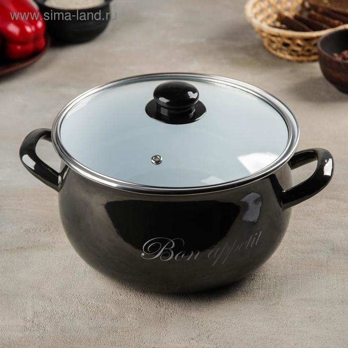 Кастрюля эмалированная «Металлик», 5,1 л, стеклянная крышка, индукция, цвет чёрный