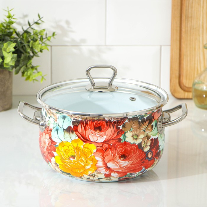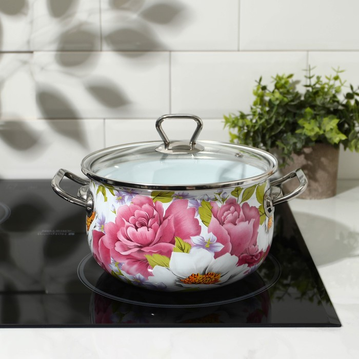 Кастрюля эмалированная «Пион», 3.1 л, индукция