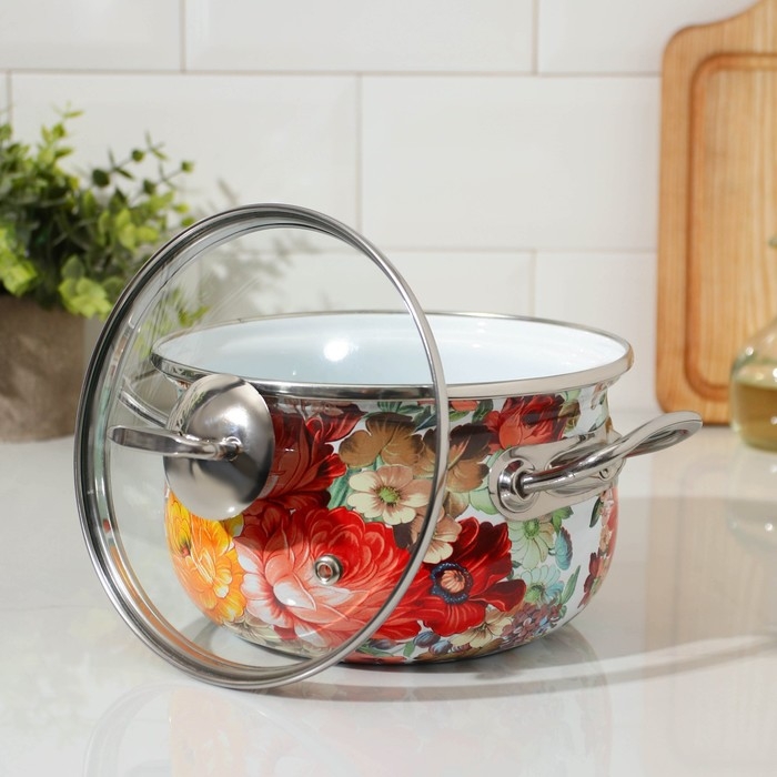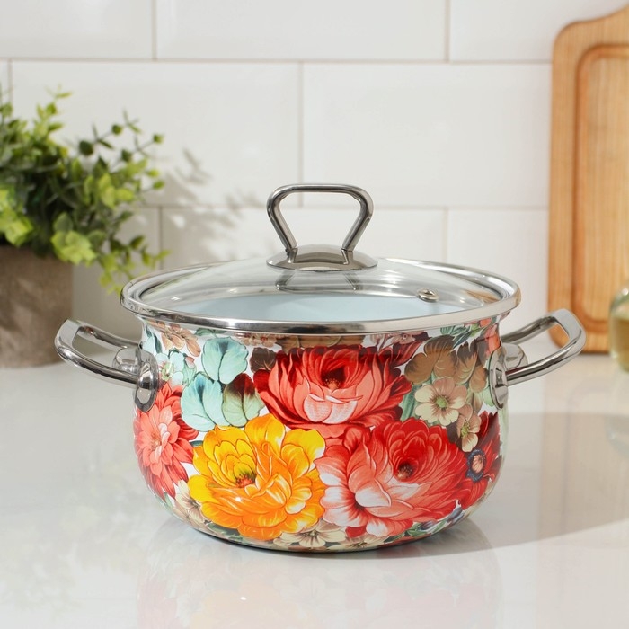 Кастрюля эмалированная «Верона», 2,1 л, стеклянная крышка, индукция