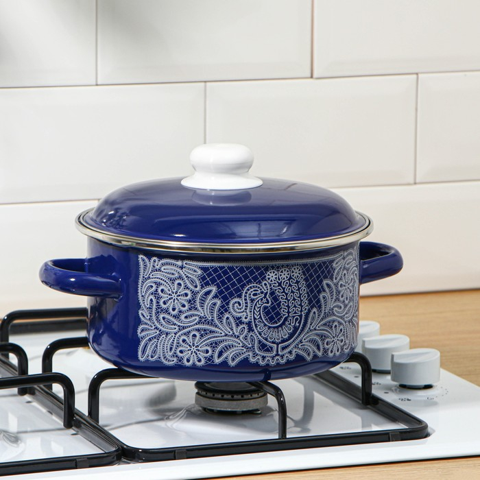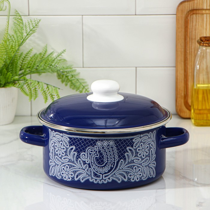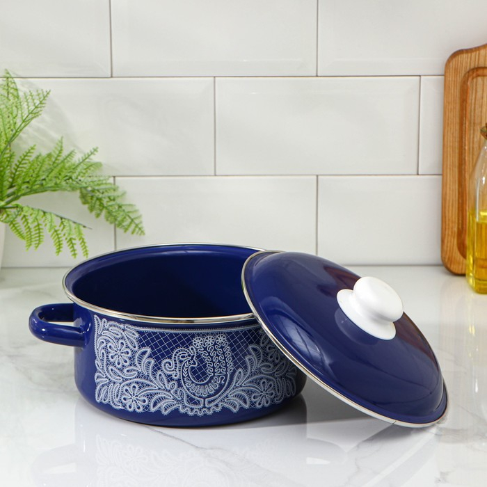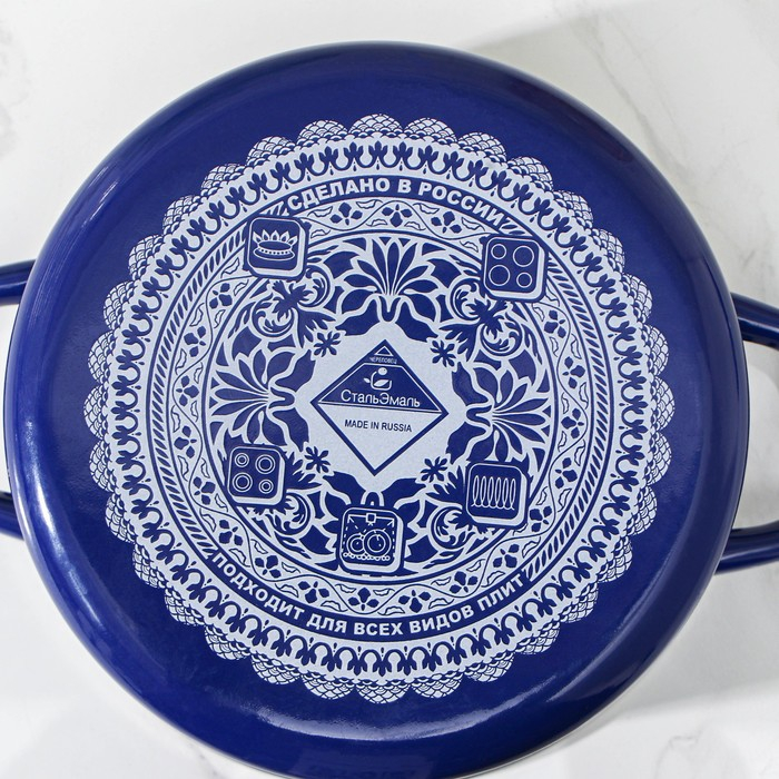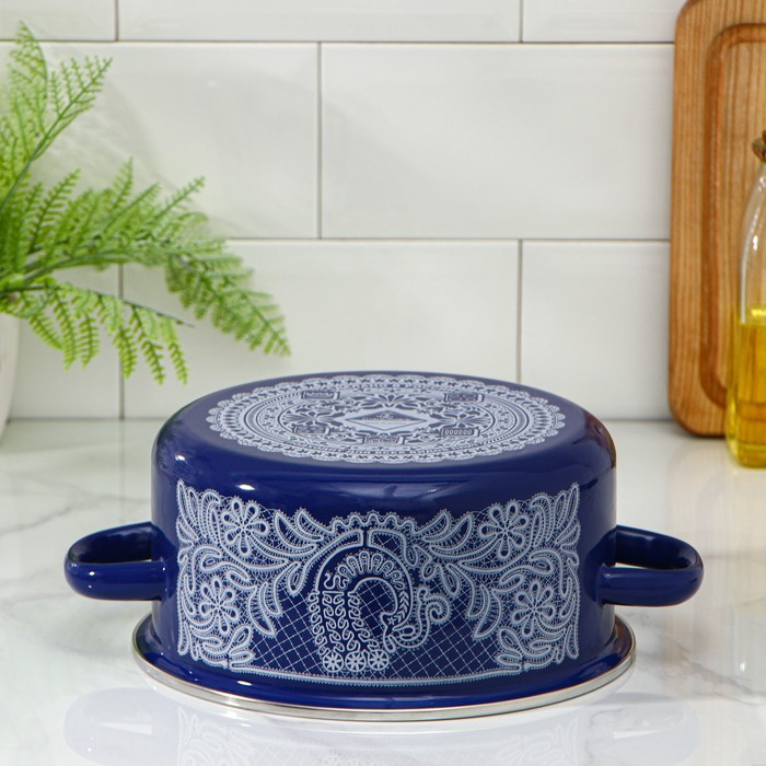 Кастрюля эмалированная «Вологодское кружево», 3 л, индукция, цвет синий