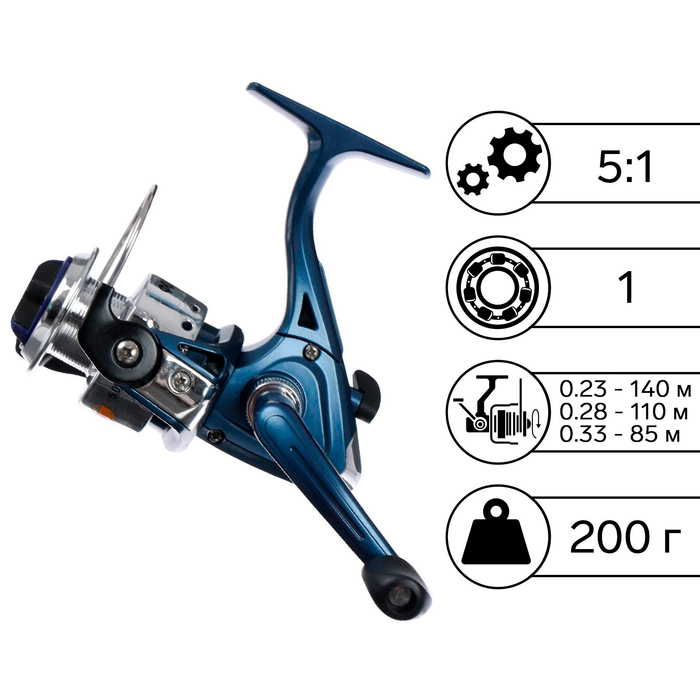 Катушка б/ин "Фортуна" 2000, 1 подшипник, 5:1, передний фрикцион