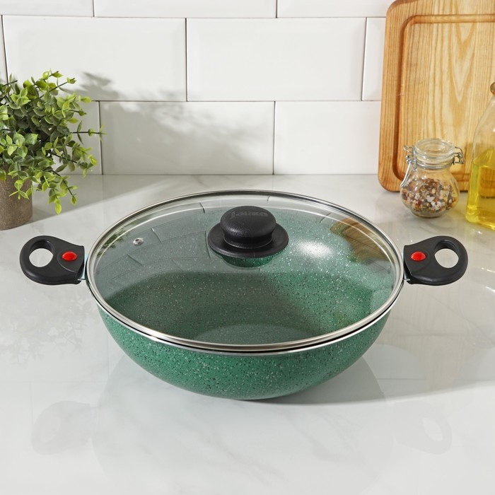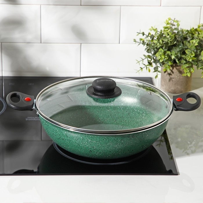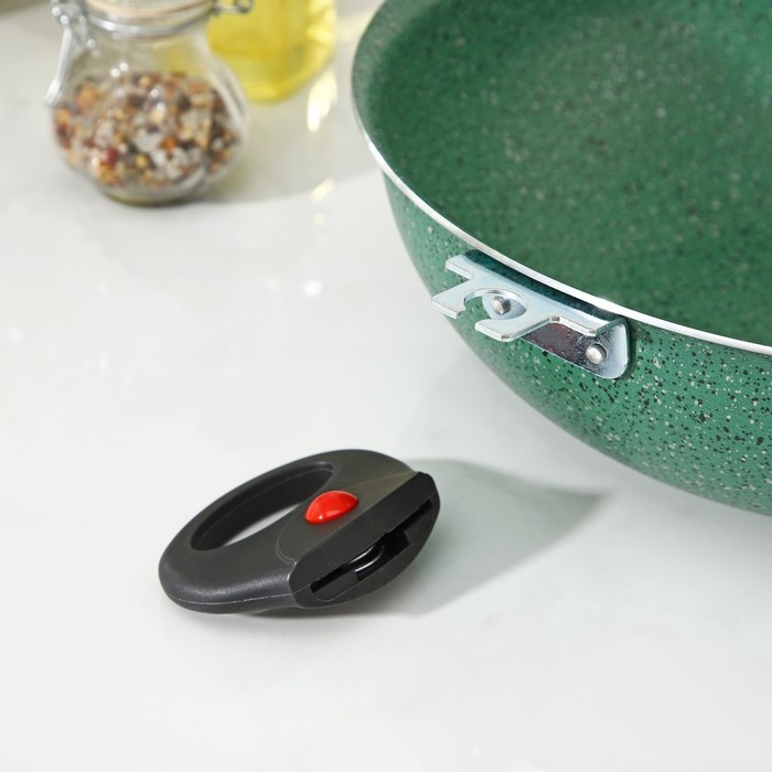 Казан, 4 л, d=28 см, стеклянная крышка, две съёмные ручки, антипригарное покрытие, цвет зелёный