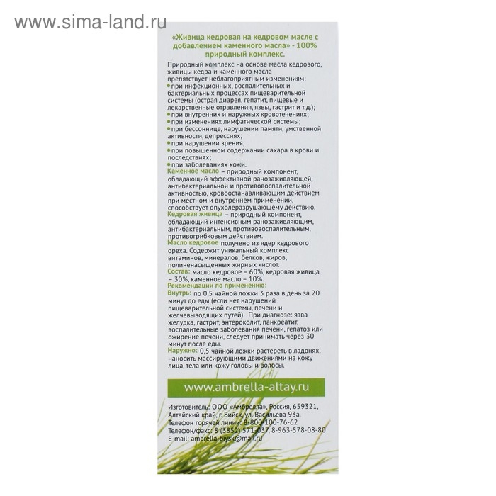 «Живица кедровая на кедровом масле с добавлением каменного масла» — 100%-ый природный комплекс. Природный комплекс на основе кедрового масла, живицы кедра и каменного масла.