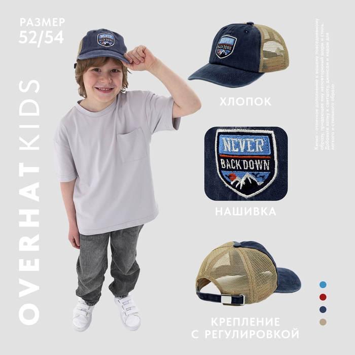 Кепка детская для мальчика с сеткой Never, джинса, р-р, 52-54 5-7 лет