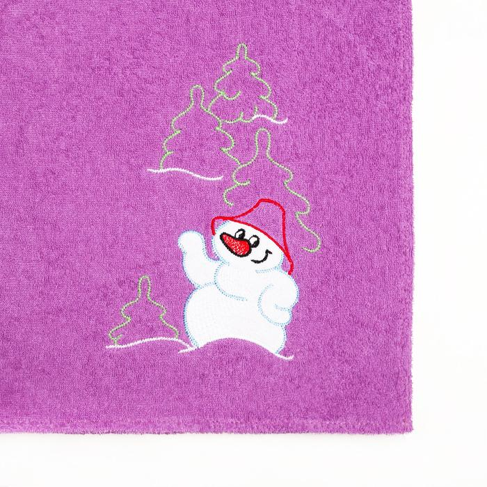 Килт женский для бани и сауны, цвет сиреневый вышивка Снеговик, размер 80х150±2 см, махра 300г/м 100% хлопок