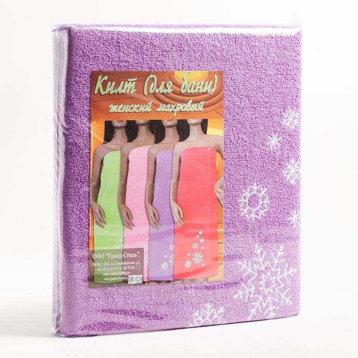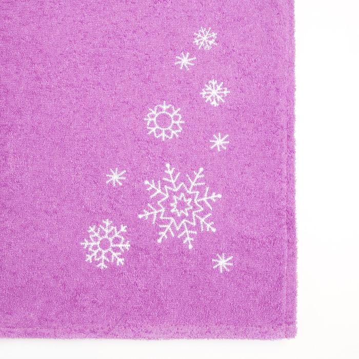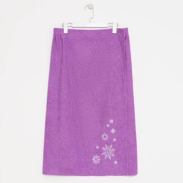 Килт женский для бани и сауны , цвет сиреневый вышивка Снежинки, размер 80х150±2 см, махра 300г/м 100% хлопок