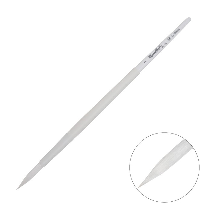 Кисть для акварели, синтетика белоснежная, круглая, Roubloff серия Aqua white round № 7, ручка удлиненная белая, покрытие обоймы soft-touch