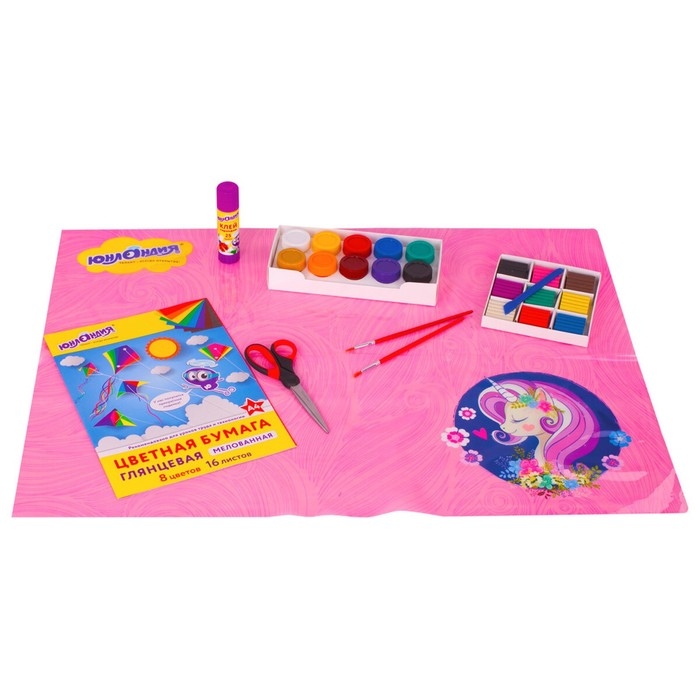 Клеёнка настольная для занятий творчеством ПВХ (складная), 700 х 500 мм, Юнландия "Единорог"