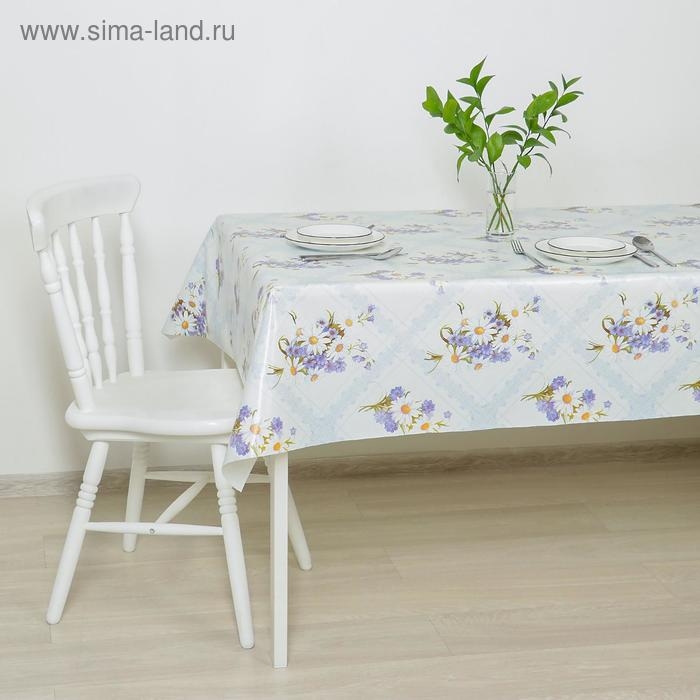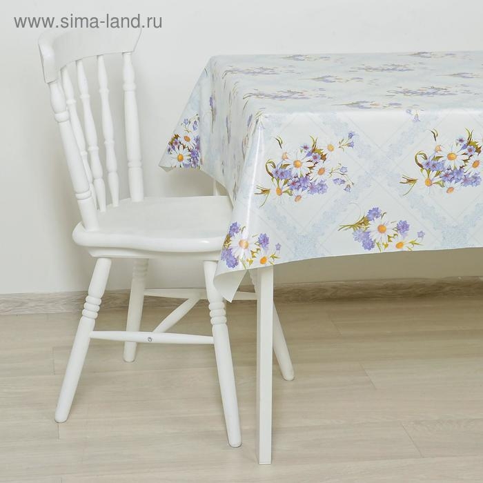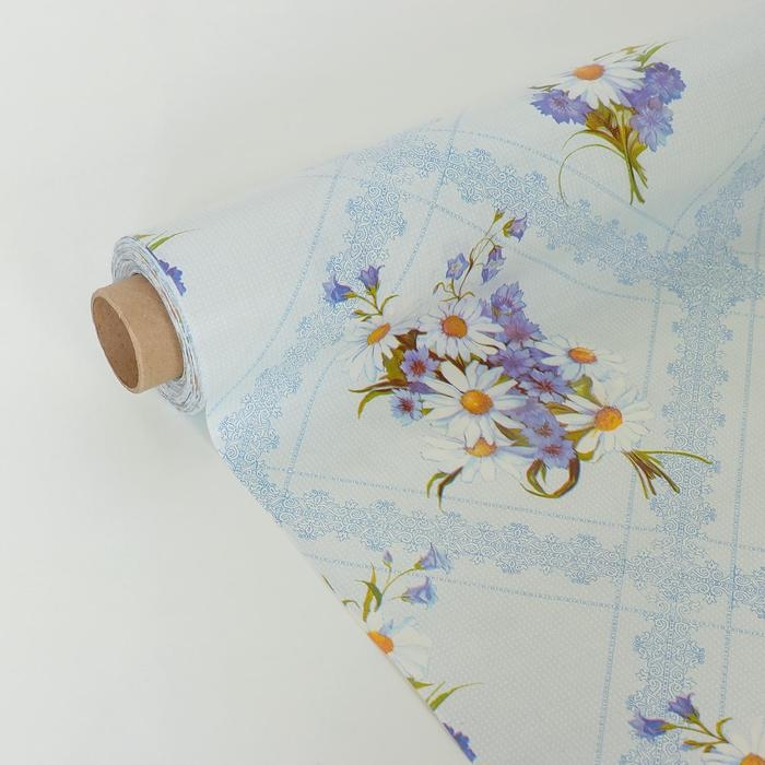 Клеенка столовая на нетканой основе «Букет ромашек», ширина 125 см, рулон 25 м, цвет голубой